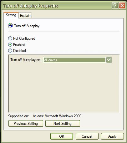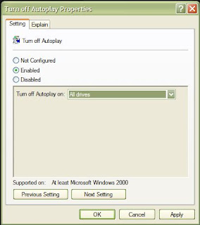Autorun merupakan trigger yang paling umum dalam penyebaran virus. Jika Anda pengguna windows XP, Anda dapat mematikannya dengan cara